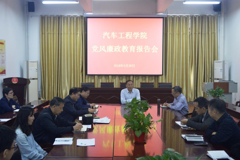 3月28日下午,纪委书记范玉斌出席汽车工程学院举办的党风廉政建设教育报告会并做《树立正确“三观”,弘扬良好师德》的报告。