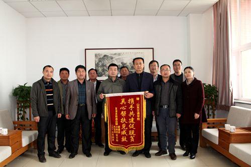 4月3日上午,我校第一轮“第一书记”三个帮包村党支部书记代表乡亲们为我校送来“携手共建促脱贫,真心帮扶见成效”的锦旗,以表达对学校和驻村“第一书记”的感谢。学校党委副书记张祖斌代表学校接受了锦旗并同三位村支部书记亲切会见和座谈。