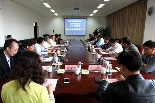 5月11日,学校与山东高速物资集团、美国海瑞集团校企合作推进会在长清校区图书馆630会议室举行。院长鹿林,副院长徐晓红、孙云早、王玉华,山东高速物资集团总经理孔祥年、党委书记郑平,美国海瑞集团董事 James Fehsenfeld,海瑞集团中国区经理、山东高速建设材料有限公司总经理张喜顺出席会议。会议由孙云早主持。