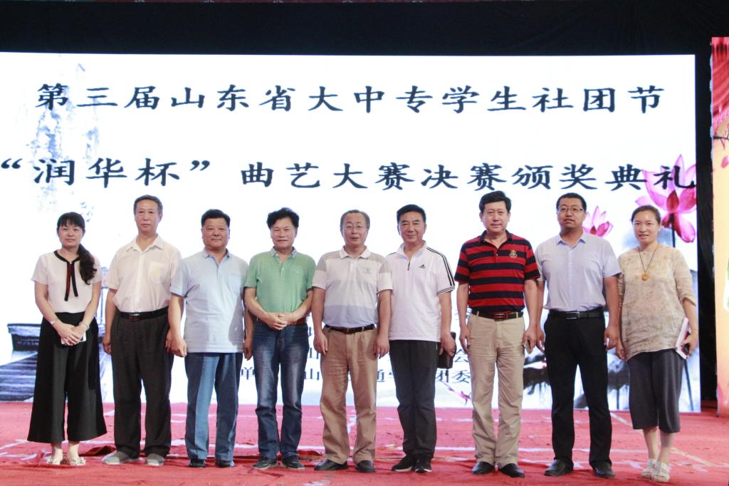 6月24日,由山东省委教育工委、共青团山东省委、山东省学生联合会主办,我校团委承办的第三届山东省大中专学生社团节“润华杯”曲艺大赛决赛在长清校区体育馆举行,学校党委副书记唐勇出席活动。著名相声表演艺术家唐爱国,著名曲艺作家、评论家孙立生,山东省曲艺家协会主席慈建国,著名快板书表演艺术家李连伟,著名曲艺理论家、山东非遗保护研究所所长郭学东担任大赛评委。校团委负责人及来自全省各高校的500余名师生观看了比赛并参加了颁奖典礼。