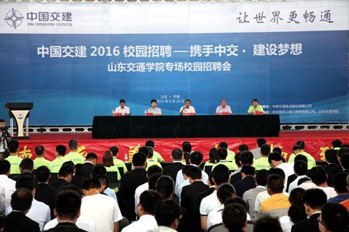 9月24日,由中交集团第四公路工程局和我校共同承办的中国交通建设股份有限公司2016届毕业生山东交通学院专场招聘会在我校长清校区体育馆隆重举行。我校党委副书记、纪委书记唐勇,山东省人力资源和社会保障厅高校毕业生就业处负责人高德敬,中国交通建设股份有限公司人力资源部总经理助理何建波,中交四公局副总经济师兼党委组织部部长彭仕勇以及来自中交一航局、中交二航局、中交三航局、广州航道局、中交一公局、中交二公局、路桥建设、中交四公局、中交隧道局9个工程局24个子分公司的招聘人员,学校各相关学院(系)学生工作负责同志以及来自省内外高校的2000余名2016届毕业生参加了招聘启动仪式。会议由学生工作部(处)负责同志主持。