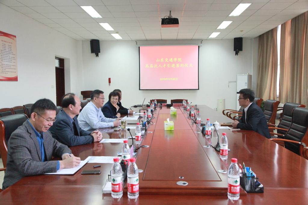 3月20日上午,“泰山产业领军人才”范永博士来校签约。党委书记孙秀丽在长清校区办公楼610接待室会见了范永。院长陈松岩、副院长徐晓红在办公楼第一会议室组织参加签约仪式。
