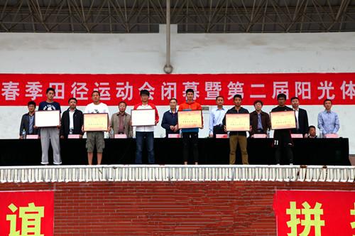 学校领导分别为获得“精神文明奖”、“优秀组织奖”、女子团体总分前六名、男子团体总分前六名和团体总分前六名的学院颁奖。管理学院、财经学院、汽车工程学院和文法学院获得“精神文明奖”;土木工程学院、信息科学与电气工程学院、交通与物流工程学院和材料科学与工程学院获得“优秀组织奖”;汽车工程学院、机械工程学院、土木工程学院、财经学院、交通与物流工程学院和管理学院代表队获得女子团体总分前六名;机械工程学院、汽车工程学院、土木工程学院、交通与物流工程学院、信息科学与电气工程学院、材料科学与工程学院代表队获得男子团体总分前六名;汽车工程学院、机械工程学院、土木工程学院、交通与物流工程学院、财经学院、信息科学与电气工程学院代表队获得团体总分前六名。我校第二届阳光体育活动月的相关成绩计入了各学院的团体总分。