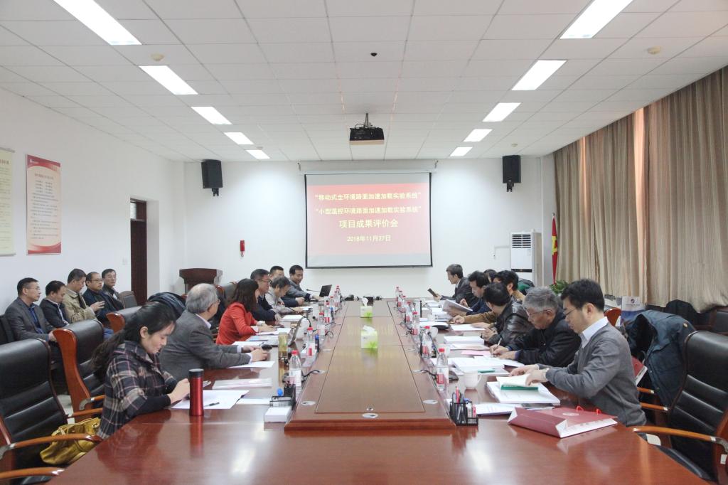 随后,来自中国公路学会、交通运输部科学研究院、山东公路学会、长安大学、山东省交通科学研究院和吉林省交通科学研究所等相关单位专家组成的专家组对实验系统进行了评价。专家组认真审阅了相关资料,听取了项目组答辩汇报,并通过现场试验和考察,一致认为实验系统首次实现了集成式全环境模拟,保证了加速加载实验与实体路面环境的统一;项目研发的系统已在国内多个科研和实体工程项目中成功应用,社会经济效益显著,成果总体上达到国际领先水平。