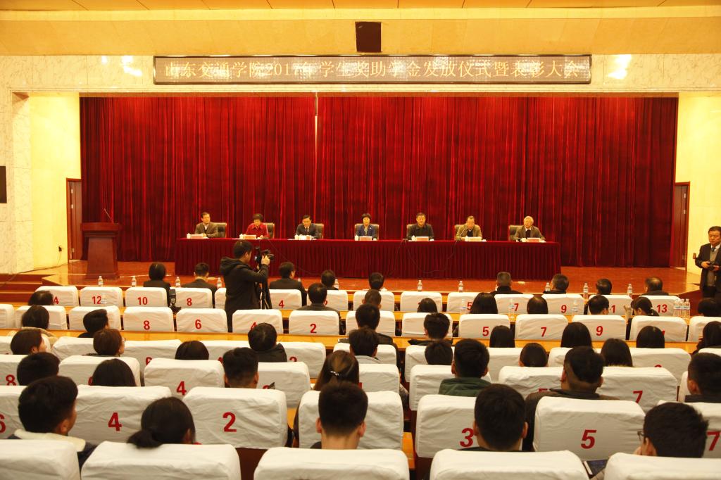 12月28日下午,学校在长清校区学术报告厅举行2017年度学生奖助学金发放仪式暨表彰大会。党委书记孙秀丽、院长陈松岩、蓝海建设集团董事长刘卫峰、党委副书记唐勇,副院长徐晓红、孙云早、孔祥云出席会议。会议由唐勇主持。