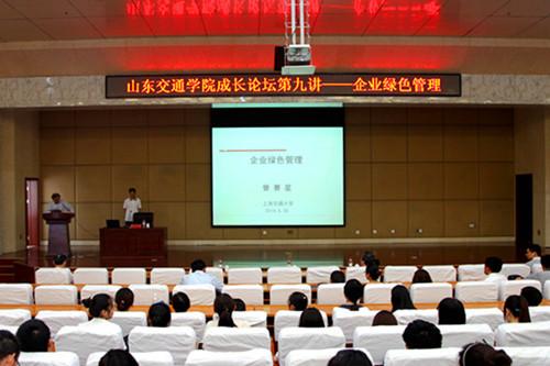 5月30日下午,我校在长清校区学术报告厅举行了“成长论坛”第九讲。2010年国家杰出青年科学基金获得者、上海交通大学安泰经济与管理学院博士生导师曾赛星教授应邀作了题为“企业绿色管理”的学术报告。院长鹿林为曾赛星教授颁发我校管理学院客座教授证书。报告会由副院长孙云早主持。