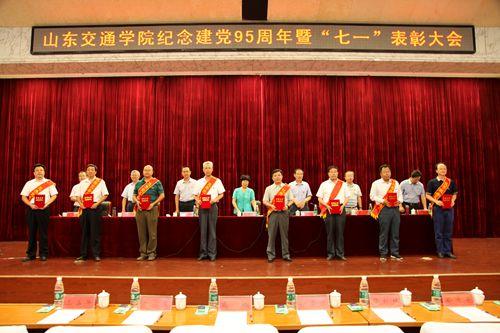 党委副书记张祖斌宣读了《关于表彰先进基层党组织、优秀共产党员和优秀党务工作者的决定》以及学校党委《关于表彰周靖同志见义勇为事迹的通报》。孙秀丽为获得山东省高校优秀党务工作者荣誉称号的张英德同志和获得山东省高校先进基层党组织荣誉称号的工程机械学院分党委颁发了奖牌和证书。张祖斌向见义勇为优秀共产党员周靖同志颁发奖金。出席大会的学校领导为受到表彰的先进单位和个人颁发了奖牌和证书。3名先进基层党组织、优秀党务工作者和优秀共产党员代表发言。