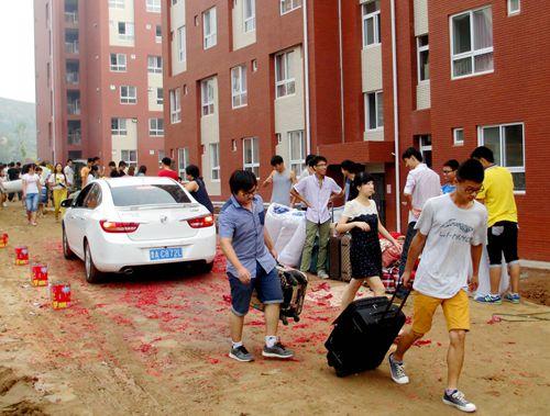 8月31日上午,在阵阵鞭炮声中,新竣工的学生公寓C组团8个大门全部开启,喜迎先期搬入的2726名女生入住。