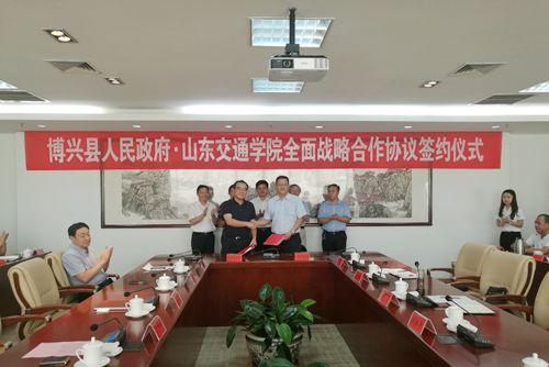 随后,陈松岩与吕明涛分别代表山东交通学院与博兴县人民政府签署了全面战略合作协议。