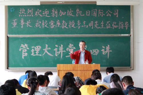 5月2日下午,新加坡凯日国际公司总裁、我校客座教授李志明先生做客“管理大讲堂”,为管理学院100余名师生带来了《成功是件简单的事》的精彩讲座。院长鹿林会见了李志明总裁,他对李志明总裁一直以来对学校的关心和支持表示感谢,并就中新两国高校学生培养及学生创新与创业等相关问题进行了交流。
