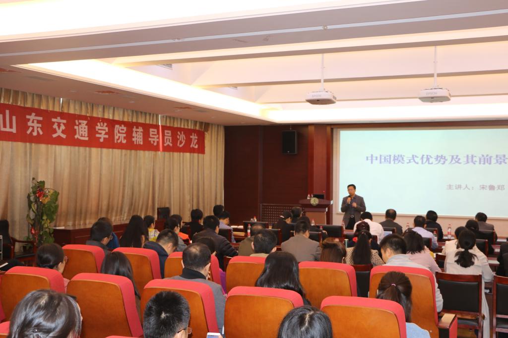 宋鲁郑还做了题为“中国模式优势及其前景”的讲座,讲座围绕“中国道路的内涵”“西式民主制度在中国行不通”“西方面临无法解决的两大挑战”和“东西方对比看中国制度优势”等四个方面,在全球视角下分析对比我国与英美、欧洲、中东、东南亚等国家和地区的政治制度和社会现状,并从政治、经济、文化、社会等多个层面剖析了中国模式的成因、现状和前景。他认为,中国模式是在我国特定的历史和文化背景下经过不断的探索和实践得以形成的;要解决中国当前面临的改革和发展问题,必须坚定不移地在中国共产党的领导下走社会主义道路。