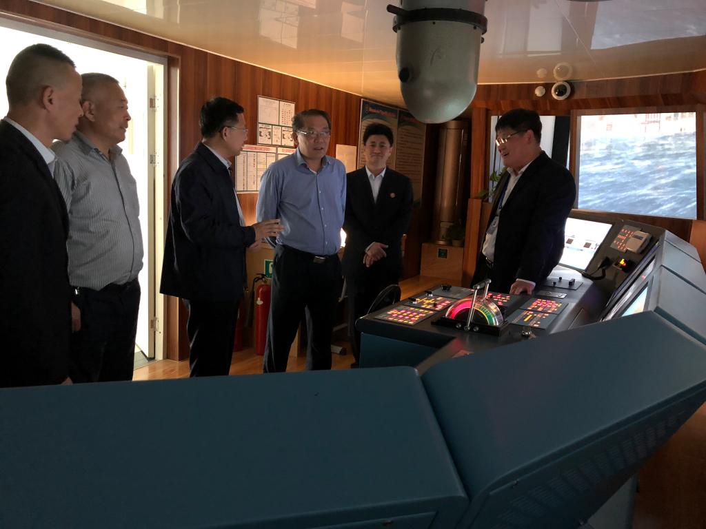 座谈结束后,刘欣堂一行参观了威海校区海洋油污染处理工程技术研究中心和轮机模拟器实验室、航海模拟器实验室。