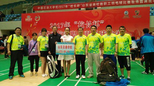 5月10—12日,由山东省教育工会主办、中国石油大学(华东)承办的2017年“校长杯”山东省高校教职工羽毛球比赛举行。党委书记孙秀丽、副院长李贞涛和柏建春、张雷、张少华、姜勇、何君莲、孟爽等6名教师共同组队参加了比赛。经过激烈的拼搏,党委书记孙秀丽勇夺校级领导组女子单打第五名,我校荣获大赛“优秀组织奖”。