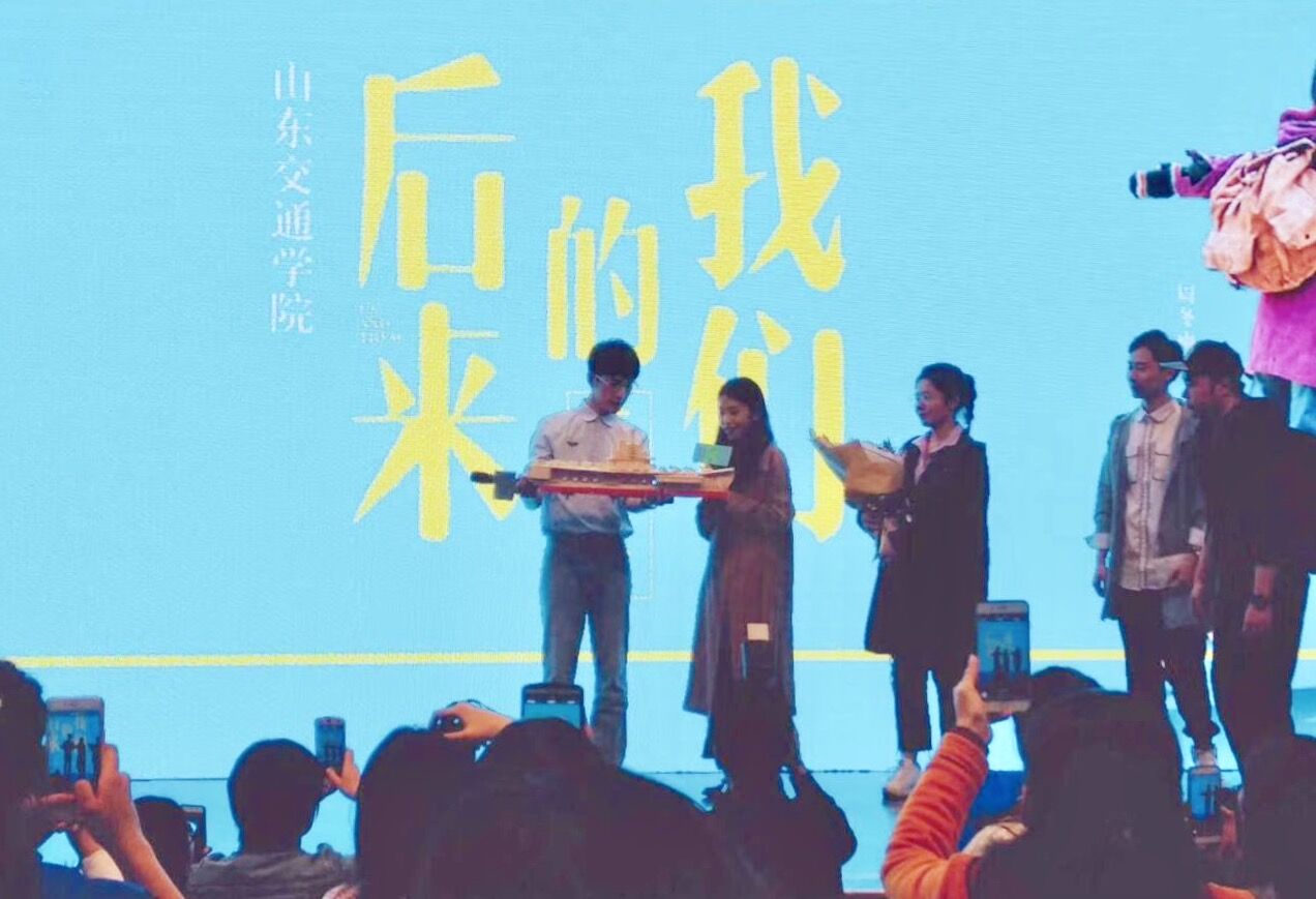 点映会上,全场600余人观看了影片《后来的我们》。影片描写了一对在北京北漂的青年男女的曲折爱情故事,让大家跟随着电影最真实的镜头去深入体会中国青年成长过程中所经历的酸甜苦辣,引导当代大学生为实现自己的梦想努力奋斗。《后来的我们》主演井柏然的到场将全场气氛推向高潮,现场同学积极与井柏然进行互动提问,井柏然也对同学们提出的问题进行一一解答。最后,我校学生将亲手制作的“辽宁号”航空母舰模型赠予井柏然,祝愿他事业一帆风顺。(团委)