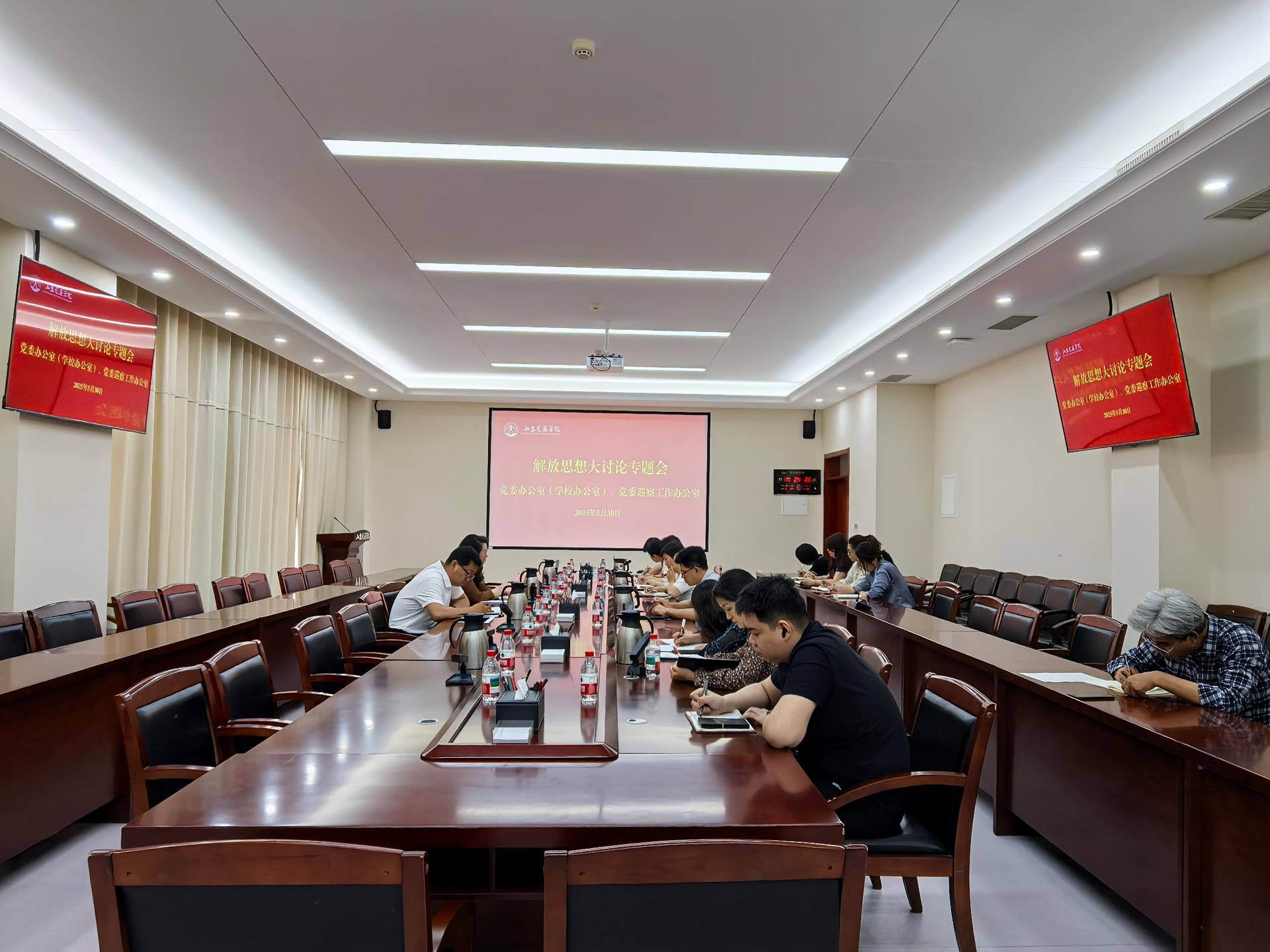 5月30日,党委办公室(学校办公室)、党委巡察工作办公室在明德楼301会议室召开解放思想大讨论专题会。