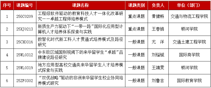 近日,中国高等教育学会公布了2025年度高等教育科学研究规划课题立项名单,我校6项项目获立项,其中重点项目2项,一般项目4项。