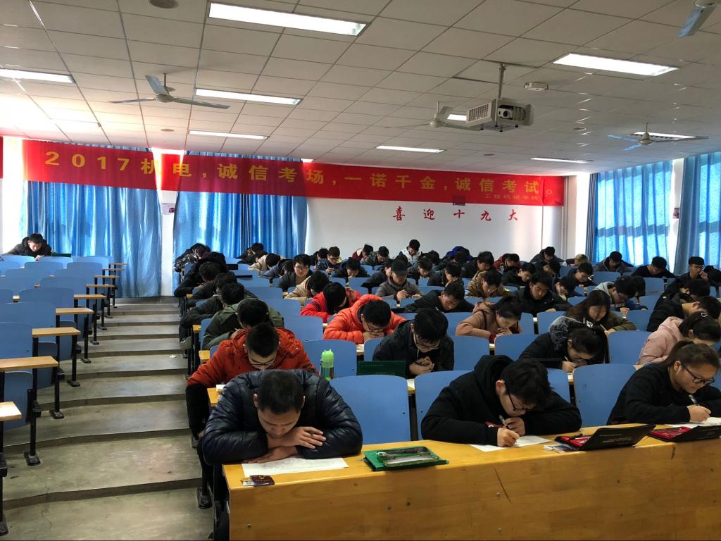 为积极培育和践行社会主义核心价值观,培养学生诚信观念,加强学风建设,在本学期末考试中,我校工程机械学院2017级机械电子工程专业在全校范围内申请了无人监考的“诚信考场”,并取得了圆满成功。