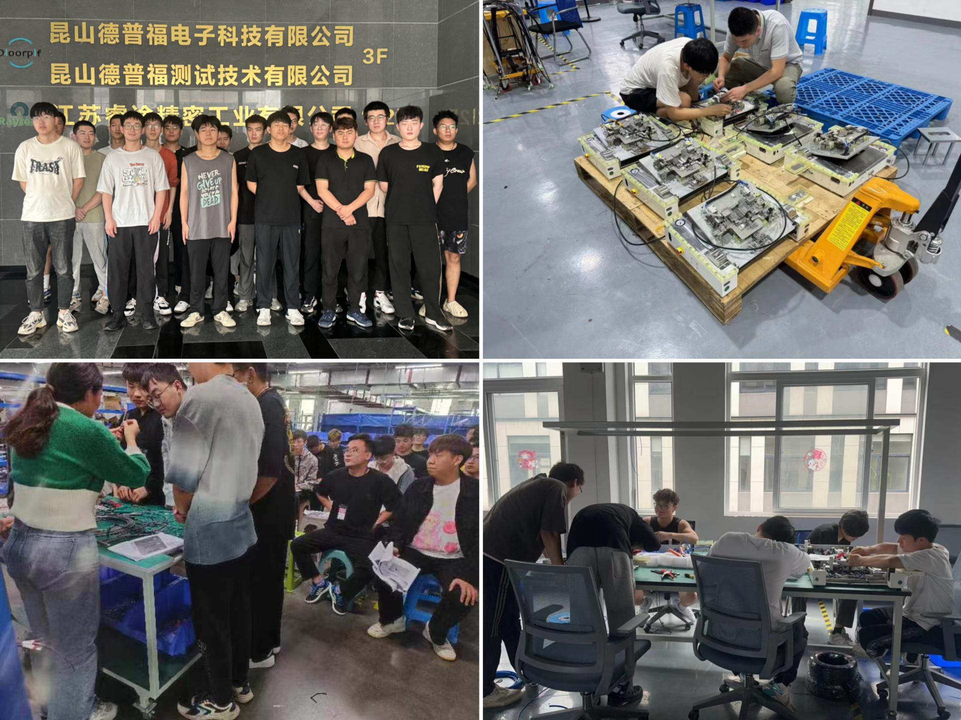 在江苏杰士德精密工业有限公司、江苏睿途精密工业有限公司的实训活动中,同学们深入工艺组、机构组、电气组等岗位,以满腔的热情和严谨的态度,细致入微地操作着各类电子设备,巧妙组合各个部件以构建出功能完善的设备或产品,亲身体验电子信息技术及制造业的魅力,将专业知识转化为提升解决实际问题的能力。