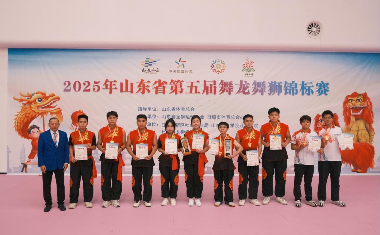10月18日至21日,2025年山东省第五届舞龙舞狮锦标赛在日照市举行。我校舞龙舞狮队获南狮传统项目第2名、规定项目第3名。
