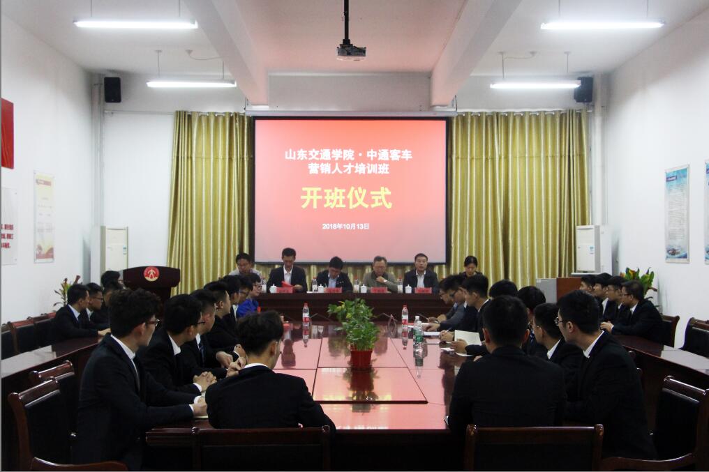 10月13日下午,中通客车订单班开班仪式在长清校区工程中心D205举行。中通客车控股股份有限公司人力资源部部长张兴华、营销公司市场处处长洪怀东,中通大学教务处处长王林豹、教师代表祁由芹,汽车工程学院分党委书记刘树民、院长于明进及25名订单班学生参加仪式。仪式由王林豹主持。