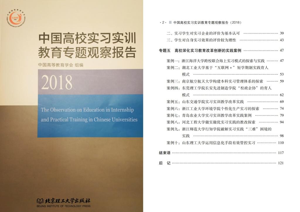 12月1日,中国高等教育学会发布了《中国高校实习实训教育专题观察报告(2018)》,《山东交通学院实习实训教学改革实践》案例成功入选。
