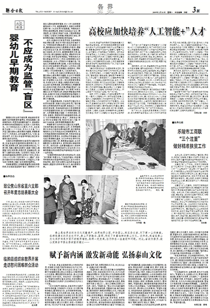 近日,《联合日报》第三版刊登发表了对九三学社我校支社主委张广渊的采访文章《高校应加快培养“人工智能+”人才》。