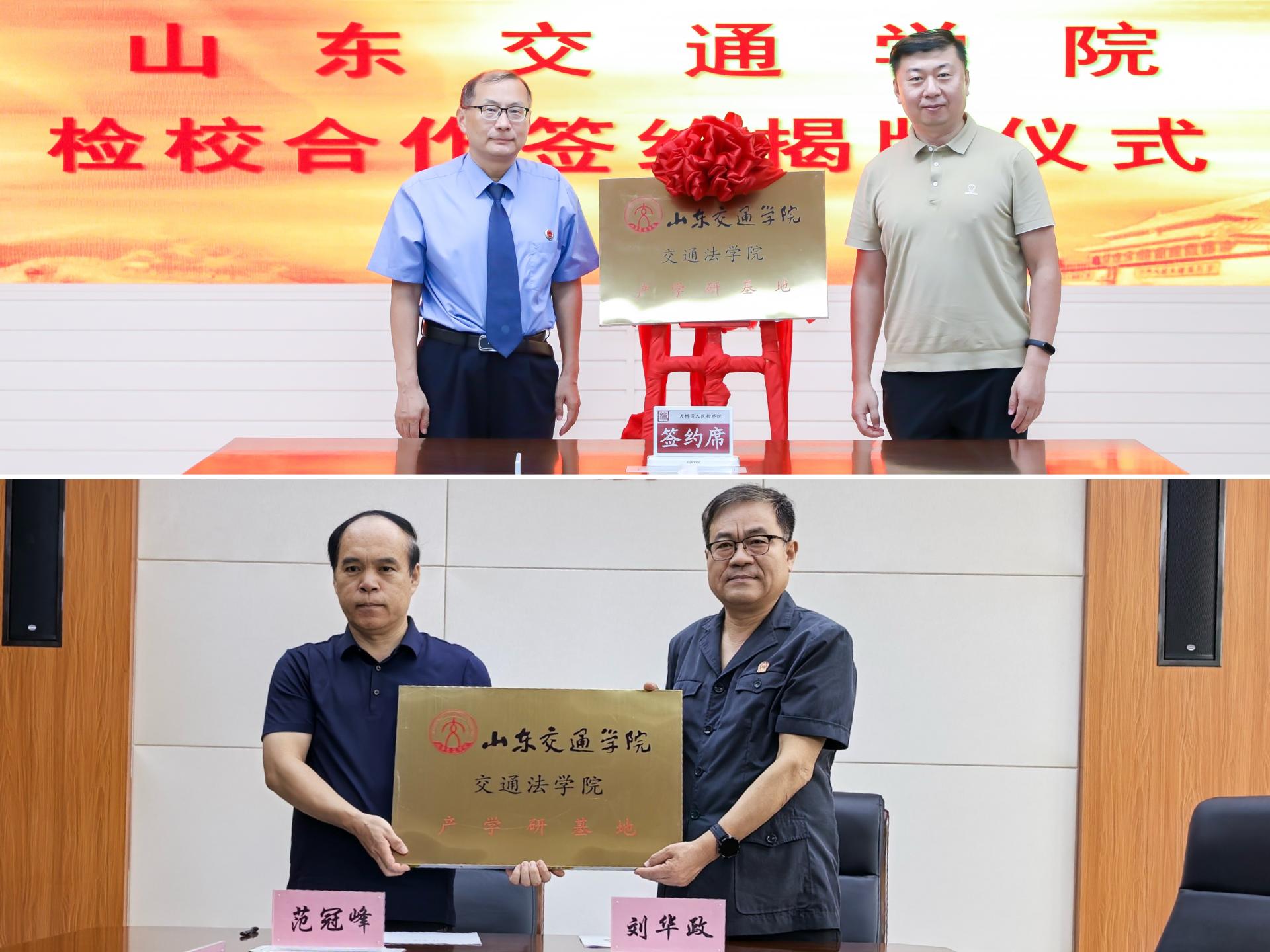 近日,交通法学院分别与济南市天桥区人民法院、天桥区人民检察院签署合作协议,建立产学研基地。交通法学院党委书记闫淼、院长范冠峰参加活动。