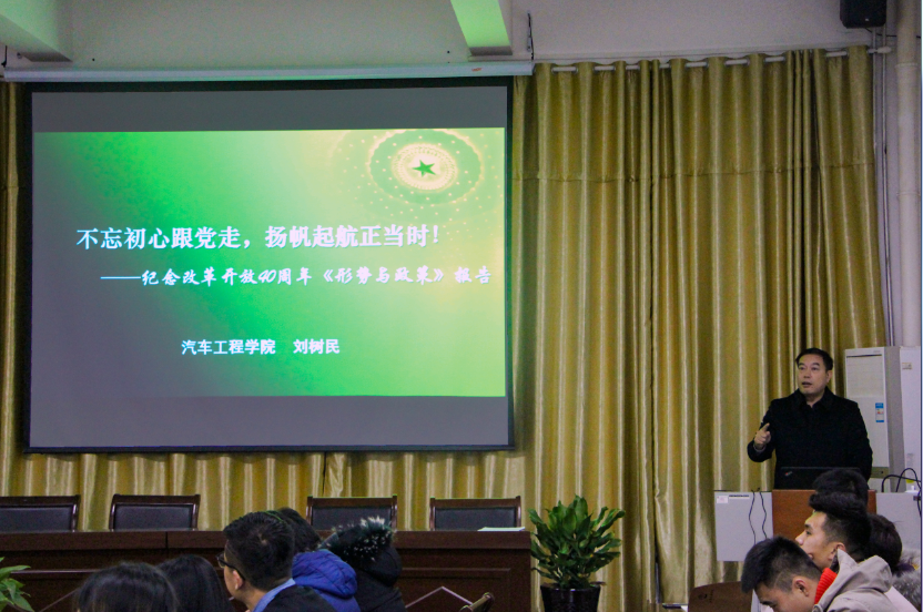 12月7日晚,汽车工程学院在长清校区工程中心D205举办纪念改革开放40周年《形势与政策》报告会。汽车工程学院分党委书记刘树民作了《不忘初心跟党走 扬帆远航正当时》专题报告,全体学生党员及发展对象参加了报告会。