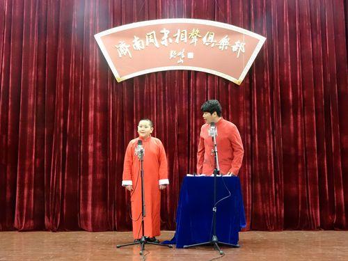 3月27日晚19:00,由山东省文学艺术界联合会、山东省曲艺家协会、济南市曲艺家协会和我校主办的诚信剧场•山东交通学院周末相声俱乐部第四季启幕盛典在长清校区学术报告厅举行,我校师生共500余人观看了演出。 演出中,孙建国、王万顺等老艺术家与大新、孙宗珂、宋亚磊、祭福嘉等青年相声表演演员分别向现场观众呈现了深厚的曲艺功底,通过相声、快板等曲艺表演形式,为观众呈现了一场精彩纷呈的曲艺表演大戏。曲苑新星段骁、祭福嘉带来了新作品《你比的了么》,精彩表演获得阵阵掌声;传统翻新的《我不在乎钱》为大学生带来了欢乐,更引发了无限深思;来自淄博的特邀嘉宾带来的《欢声笑语》,让大家在笑声中了解了传统民俗文化。大新、程刚创作的以廉政为主题的相声《小鞋匠的奇遇》,用新手法、新表演演绎风趣、幽默,让观众在笑声中感受正能量,赢得了满堂喝彩。 据悉,自2013年10月份启动至今,山东交通学院济南周末相声俱乐部坚持在高校校园进行曲艺文化系列演出,宣传和普及曲艺文化,累计表演了38场,观众达上万人次,为弘扬中国传统曲艺文化、保护国家非物质文化遗产做出了贡献。(团委 文/袁娜 图/刘执坤)