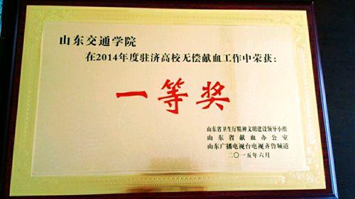 近日,驻济高校无偿献血表彰大会在济南召开。会议表彰了2014年度在无偿献血工作中作出突出贡献的单位及个人。省卫生计生委、省委高校工委、团省委志愿者工作部、齐鲁电视台相关领导出席会议并向获奖单位和个人授奖。我校荣获“2014年度驻济高校无偿献血先进集体一等奖”,并在大会中作典型发言。 长期以来,我校高度重视无偿献血工作和各类志愿服务活动,特别注重培养学生关心社会、关爱他人的社会主义道德风尚,把动员学生积极参加无偿献血活动作为培育和践行社会主义核心价值观的具体行动,积极配合《中华人民共和国献血法》的颁布实施,利用开办知识讲座、板报墙报、宣传画册等各种形式,宣传无偿献血的重要意义和献血知识,弘扬无私奉献的高尚行为和救死扶伤的人道主义精神,形成了正确的舆论导向。学校无偿献血志愿服务队累计志愿服务时间数千小时,在2014年11月份连续4天的无偿献血中,我校累计献血人数达927人,献血量达32.4万毫升,2014年献血总量约42万毫升。(团委 文/陈磊)