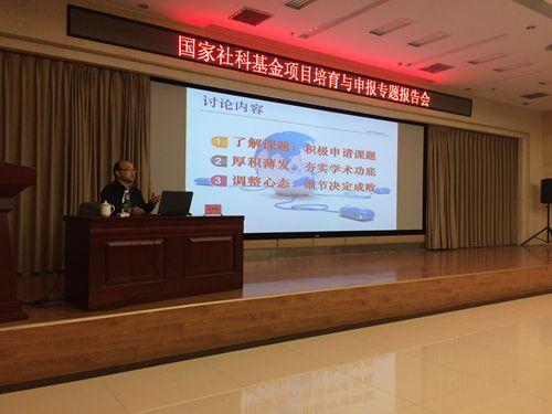 11月17日下午,为做好我校2017年度国家社科基金项目的申报工作,学校邀请中共山东省委党校王申贺教授到校作题为《国家社科基金项目培育与申报》的专题报告,报告会由科研处负责同志主持。来自学校人事处和各二级学院(部)的博士和青年教师近百人参加了报告会。 王申贺结合自己多年申报主持国家社科基金项目和作为项目评审专家的经验从“了解课题,积极申请课题”“厚积薄发,夯实学术功底”“调整心态,细节决定成败”三方面阐述了选题基本要求、论证规范和申报常见问题。整个报告结合生动详实的案例,图文并茂,深入浅出,启迪广大青年教师对社会发展的前沿问题保持学术敏感,积极参与课题的申报与研究。(科研处 经济与管理学院 文图/吕宜辉 )