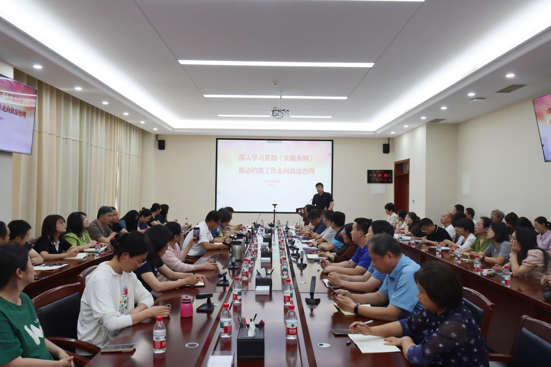 在第十八个国际档案日到来之际,5月29日,学校在长清校区明德楼301会议室举办第九期办公室综合业务培训班暨档案法实施条例专题培训,邀请山东省档案馆经济科技档案业务处四级调研员王志广作专题报告。