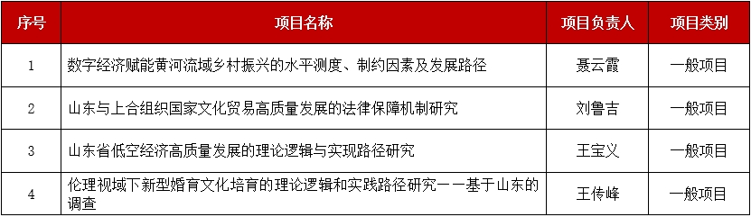 近日,山东省哲学社会科学工作办公室公布了2024年度山东省社会科学规划研究专项课题立项名单,我校4项课题获批立项。