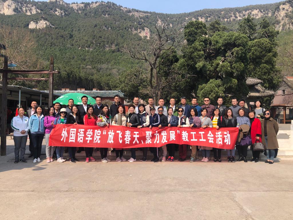 为进一步鼓励全体教职工强健体魄,团结奋进,以饱满的精力投入到工作中去,4月3日下午,外国语学院分工会在长清区五峰山景区内举办主题为“放飞春天,聚力发展”的户外登山活动。外国语学院50余名教职工参加了本次活动。