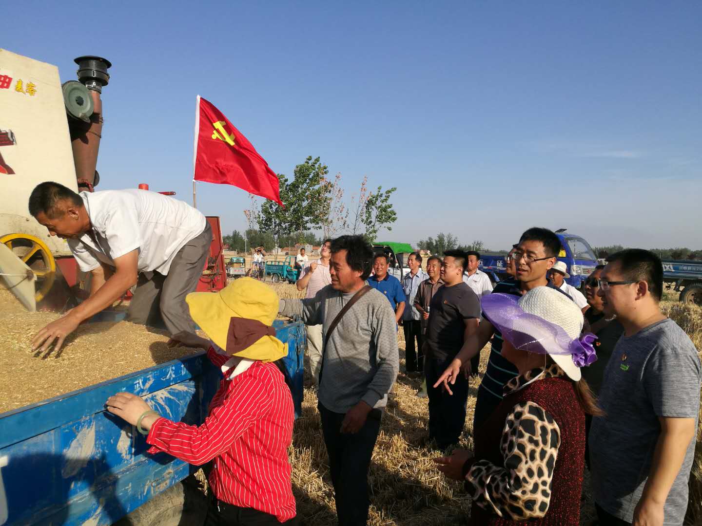 通过前期的走村入户,第一书记驻村工作队了解到部分贫困户丧失劳动力或者劳动力不足。针对这种情况,工作队带领帮包村的党员们举起党旗,佩戴党徽,带上劳动工具,开着自家的农用车,走进贫困户的麦田。活动现场,党员们帮助收割、装袋、运输、晾晒,在烈日下挥汗如雨。“感谢党和政府给我们派来了这么好的第一书记,俺对象尿毒症,家里孩子还小,没有劳力,每到农忙都犯愁。今年好了,第一书记们帮俺联系了收割机,还从他们的生活费中出了收割费,可给俺家帮了大忙了。感谢今天帮我们家收麦的党员们”,被帮包的蔡大姐握着第一书记的手留下了泪水。