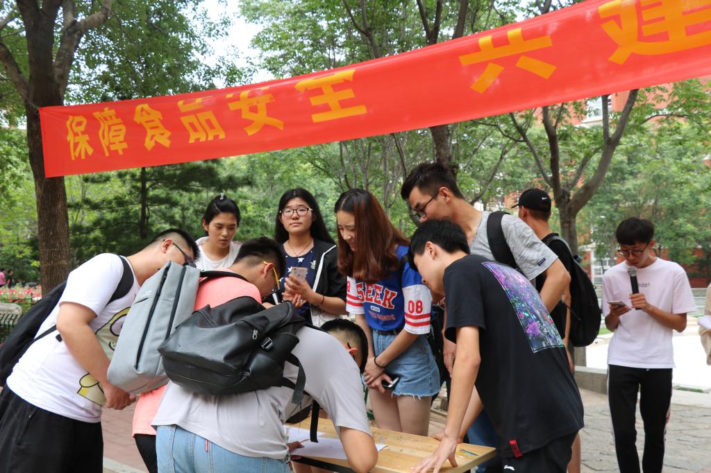 6月22日,饮食管理服务中心组织校学生会生活维权部在长清校区食堂周边开展了宣传食品安全主题活动,通过“我宣传,你了解”的活动形式,将食品安全知识宣传页发放至学生手中,让在校大学生参与到活动中来,让他们在活动中了解食品安全的知识。同时食堂更新食品安全宣传展板,普及预防诺如病毒相关知识,更好地宣传引导学生,营造人人关心食品安全的良好氛围,真正达到食品安全知识普及的目的。食堂服务质量的提升、食品安全意识进一步提高,得到学生好评,学生自发挂出条幅,呼吁身边同学提高食品安全意识,自觉抵制外卖,预防肠道传染病传播。