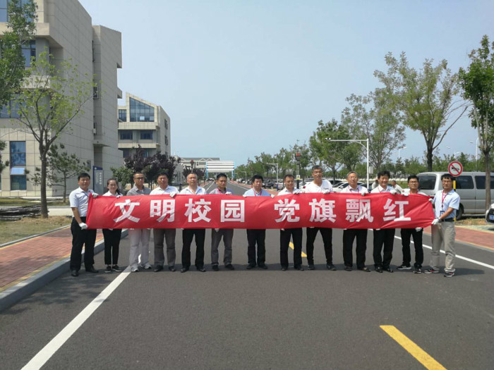 会议结束后,党员们共同观看了《时代先锋张富清——“守初心 葆本色”》宣传片,并到威海校区主环路共同开展“文明校园 党旗飘红”主题党日活动。