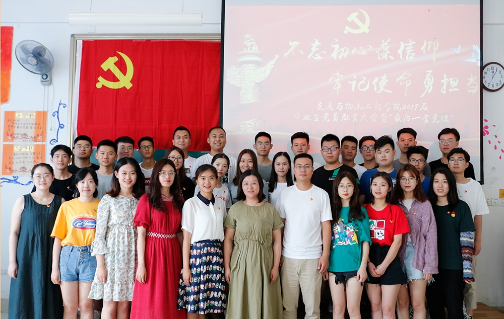 6月25日,交通与物流工程学院在长清校区2C107举行“不忘初心葆信仰,牢记使命勇担当”2019届毕业生党员教育大会暨最后一次党课。学院分党委副书记单珊、各学生党支部书记、全体2019届毕业生党员参加了大会。