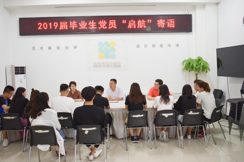 为庆祝建党98周年,深入推进省级文明校园创建工作,6月25日,艺术与设计学院结合毕业生文明离校、毕业前最后一堂党课,在工程中心A308会议室举行了2019届毕业生党员“启航”寄语活动。