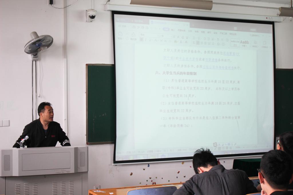 5月8日,经济与管理学院在长清校区1B302教室举办国防教育宣讲活动。活动邀请党委学生工作部(处)张民担任主讲人,经济与管理学院全体学生干部参加活动。