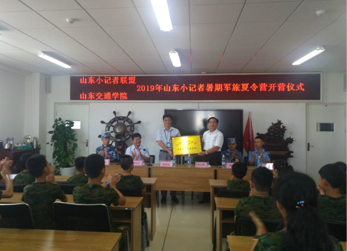 7月8日,“2019年山东小记者暑期军旅‘独立团’夏令营第一期”开营仪式在威海校区航海学院会议室举行。本次活动由山东小记者联盟协会、山东小记者联盟传媒和航海学院联合主办,航海学院党总支书记李西田、院长李光正,山东小记者联盟秘书长张义强,以及夏令营全体教官和所有参营人员共同参加了开营仪式。