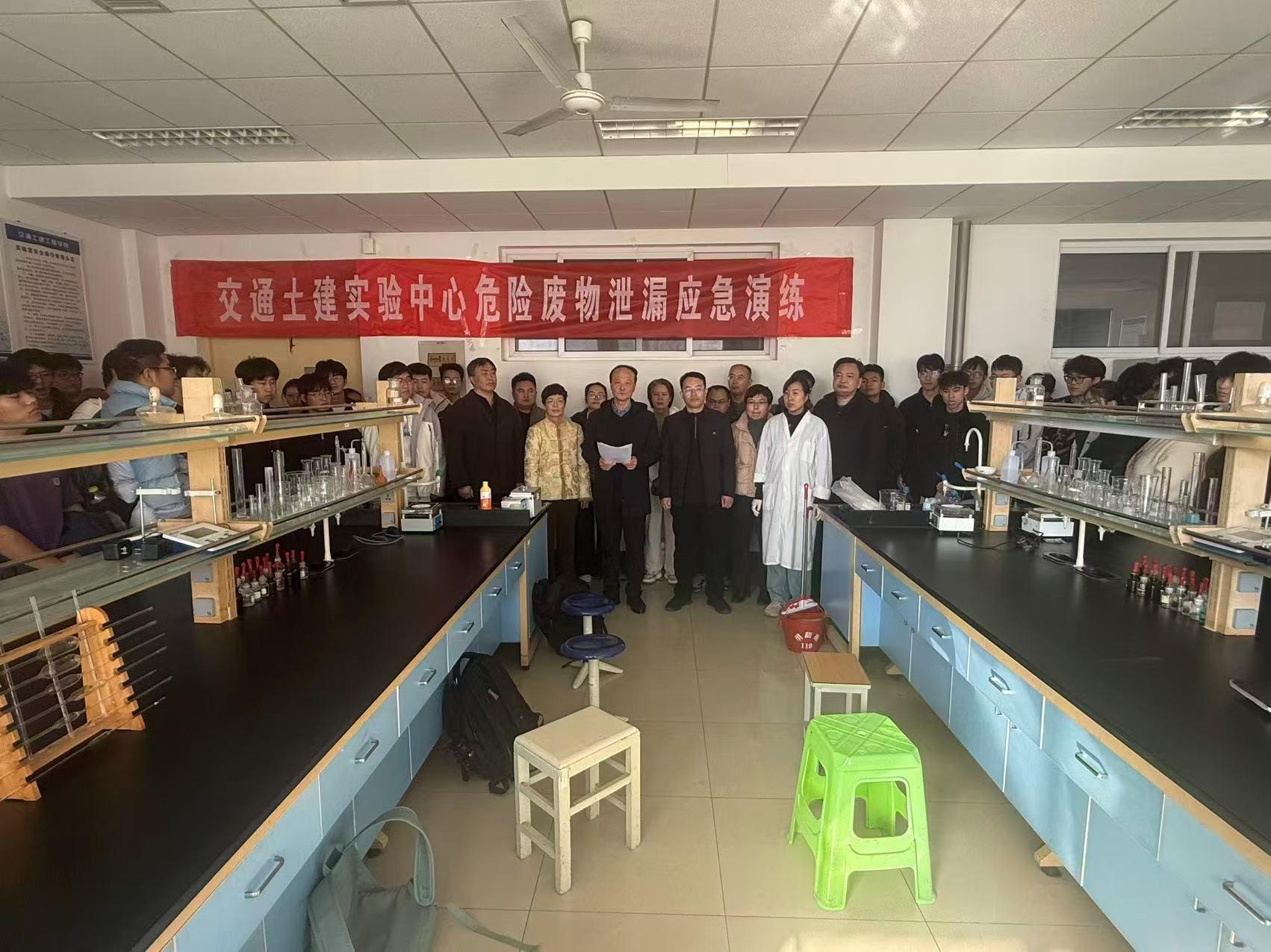 11月19日,交通土建实验中心开展化学实验室危险废物泄漏专项应急演练。交通土建工程学院党委书记孙照波参加活动。