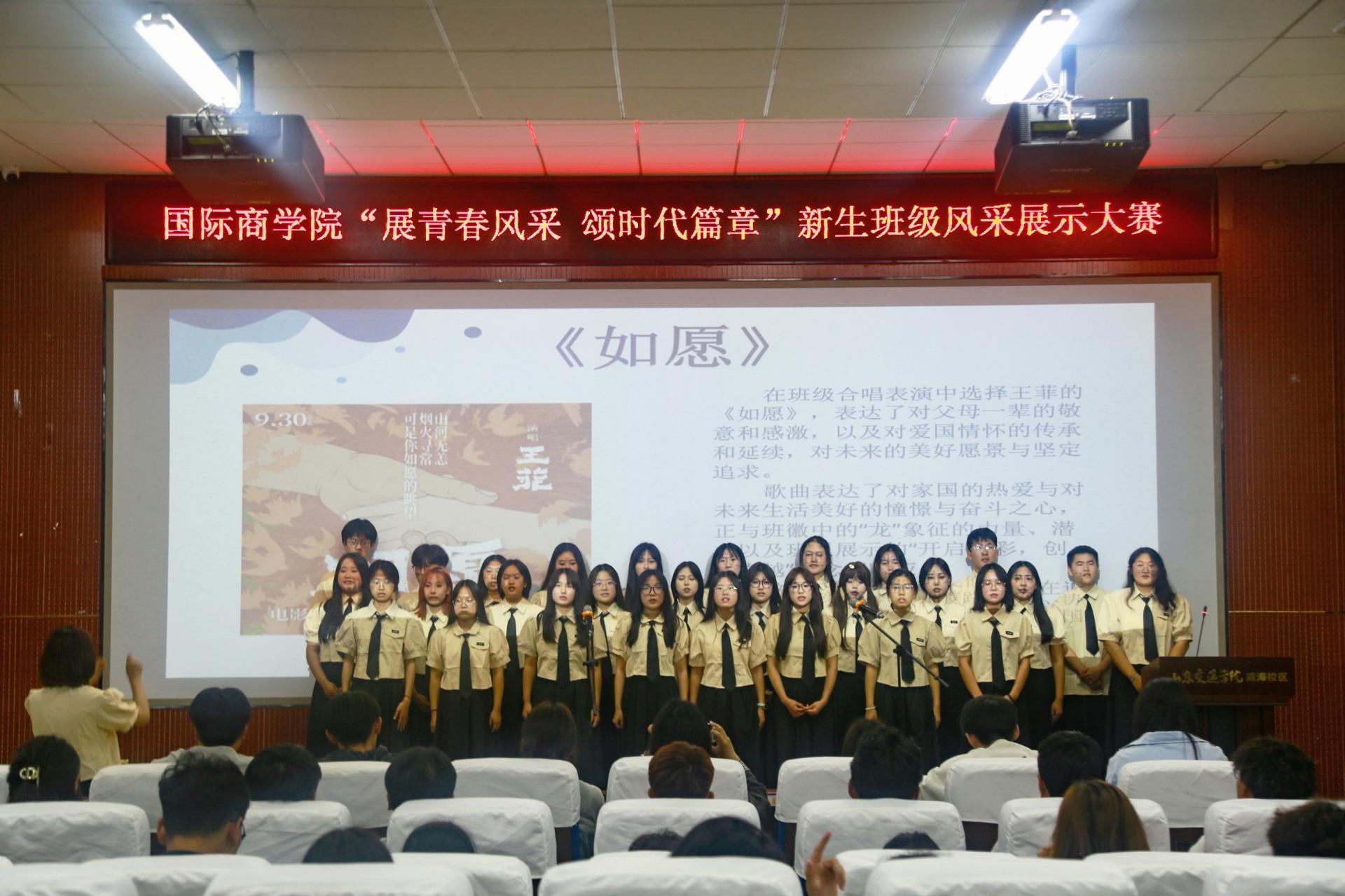 国际商学院在威海校区二号报告厅举办“展青春风采,颂时代篇章”新生班级风采展示大赛。各个班级紧扣专业特色与班级文化,展示了班徽及文化墙设计理念,现场气氛热烈、掌声阵阵,展现出学生们团结进取、积极向上的青春风采与精神风貌。