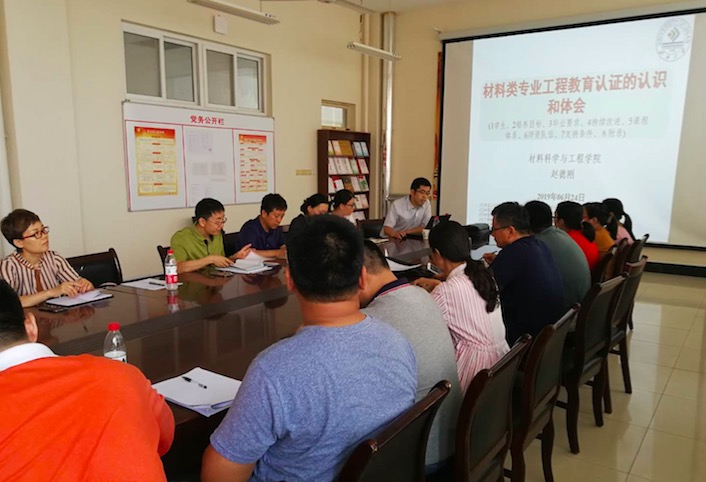 报告结束后,赵德刚与参会教师就专业认证的申请和准备工作进行交流,并对材料科学与工程专业的认证工作及人才培养提出了意见和建议。