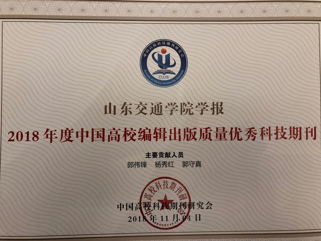 这一成绩的取得,表明《山东交通学院学报》学术影响力和编辑出版质量进一步提升,是学报编辑部近年来不断提高编辑人员业务能力,狠抓学报编辑出版质量的结果。