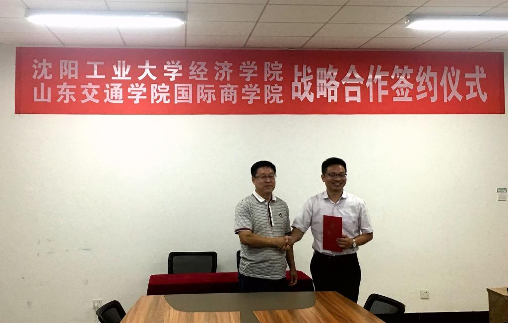 协议签署前,双方分别介绍了学校相关情况。沈阳工业大学经济学院张孟才与国际商学院院长楚金华分别代表双方学院签署了战略合作协议。根据协议规定,双方将本着“优势互补、合作共赢”的原则,重点在学科建设、学术研讨、师资互访、硕士研究生联合培养等方面进行深入合作。