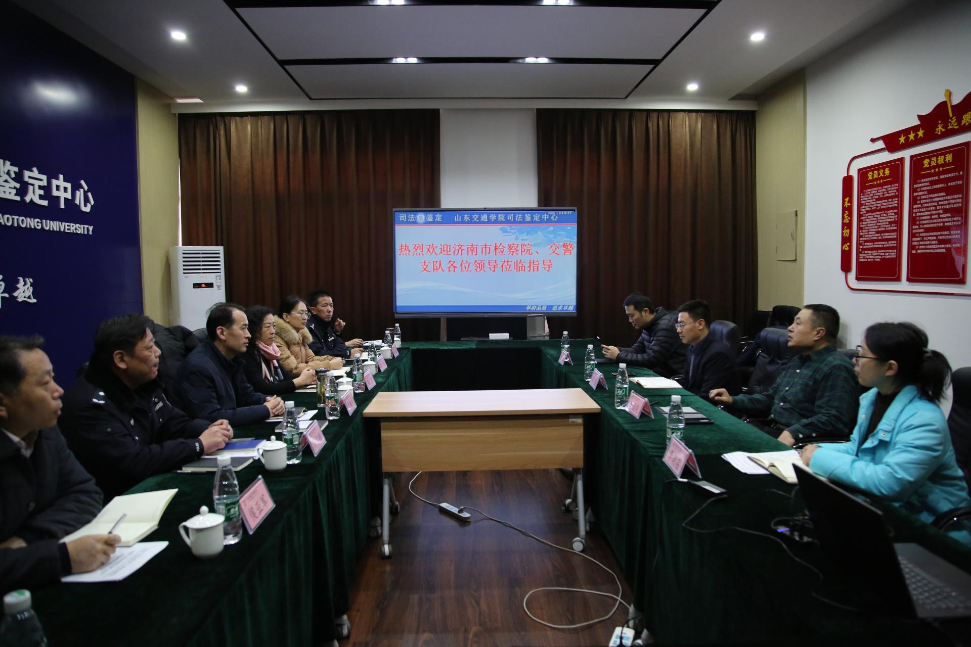 12月27日,济南市公安局交警支队副支队长艾峰训、济南市人民检察院第一检察部副主任靳彦等一行6人来我校司法鉴定中心调研并开展座谈,司法鉴定中心主任李国庆接待来宾并陪同调研。