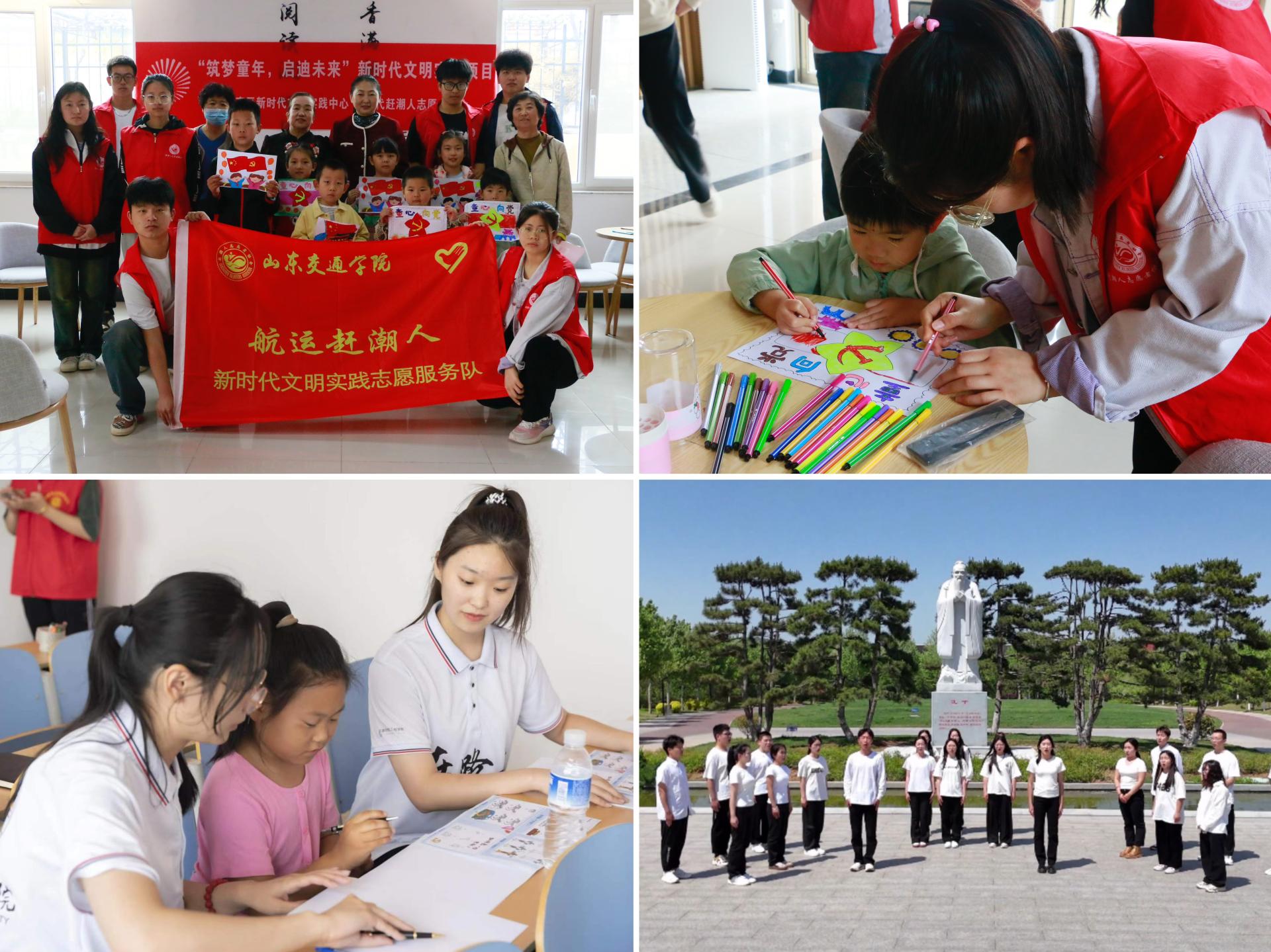 贡献青春力量,挺膺青年担当。各学院积极开展志愿服务活动,在爱心奉献中擦亮青春底色。航运学院赶潮人新时代文明实践志愿服务队、交通与物流工程学院团委分别组织青年志愿者赴小学开展“童心向党”志愿服务活动,带领少年儿童创作红色绘画作品,教育引导少年儿童坚定理想信念,厚植爱国情怀。