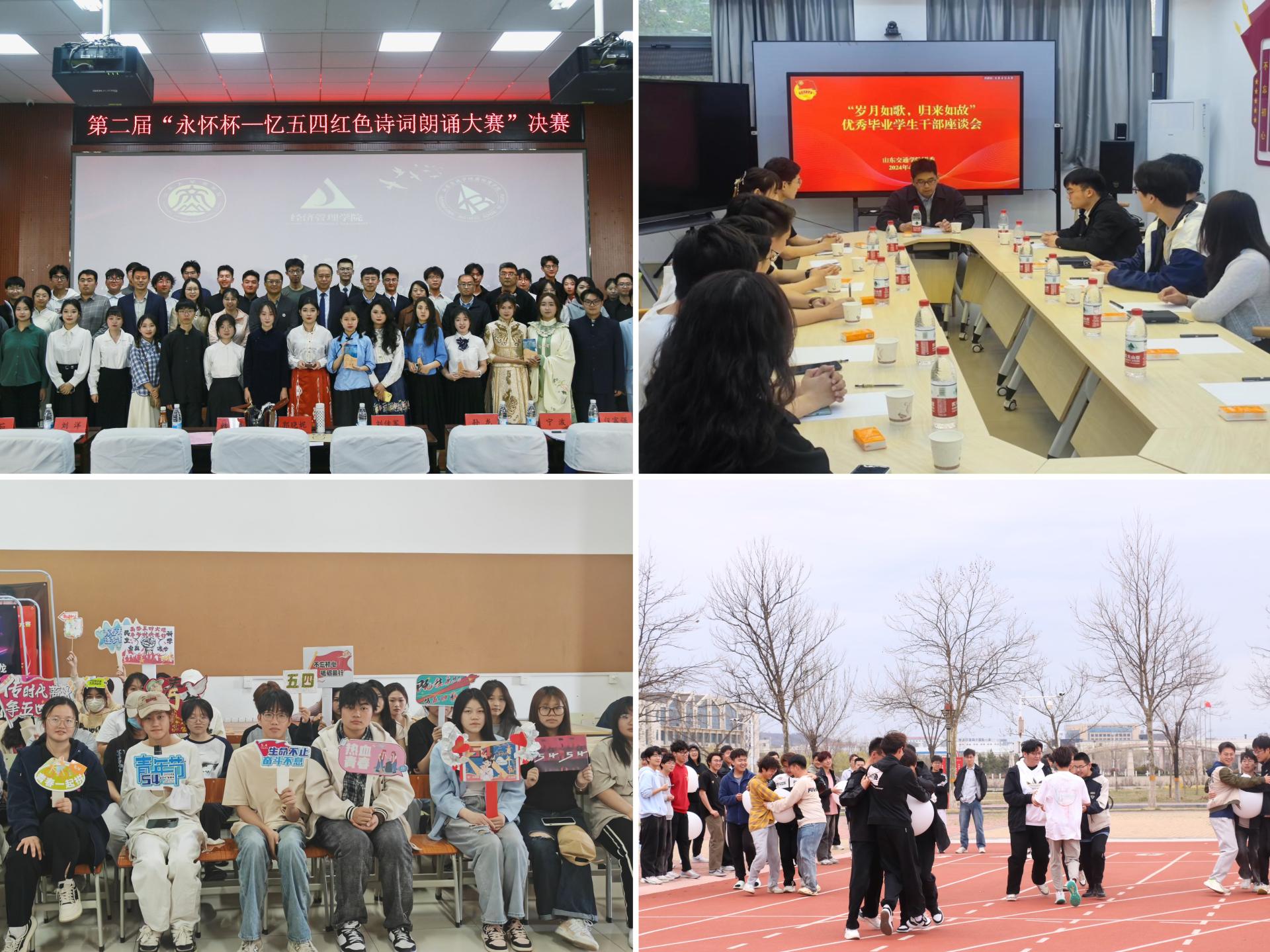 唱响时代赞歌,展现青春风采。各单位(部门)组织开展丰富多彩的活动,在寓教于乐中凝聚奋进力量。国际商学院与山东大学(威海)、哈尔滨工业大学(威海)联合举办第二届“永怀杯——忆五四红色诗词朗诵大赛”决赛,艺术与设计学院开展“声悦五四 情寄爱国”主题朗诵活动,在铿锵有力、抑扬顿挫的朗诵中展现新时代青年的爱国情怀和理想抱负;学校团委开展读书分享会及优秀毕业生座谈会,引导学生从书籍和朋辈榜样中汲取学习经验和生活智慧;航运学院开展“寸心寄华夏,五四漾韶华”活动,通过模拟红军长征和中国革命事业的艰辛路程,引导学生在学思践悟中汲取奋进力量;交通土建工程学院、交通与物流工程学院、艺术与设计学院分别开展五四青年节主题手抄报评比、手举牌设计比赛等活动,激发青年学生的爱国热情和创新创造意识。