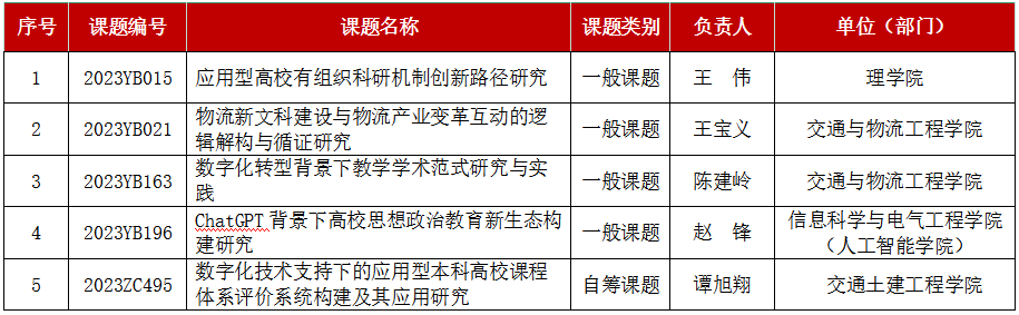近日,山东省教育科学规划领导小组办公室公布了山东省教育科学“十四五”规划2023年度课题立项名单,我校有5项课题获得立项。其中,一般课题4项,自筹课题1项。